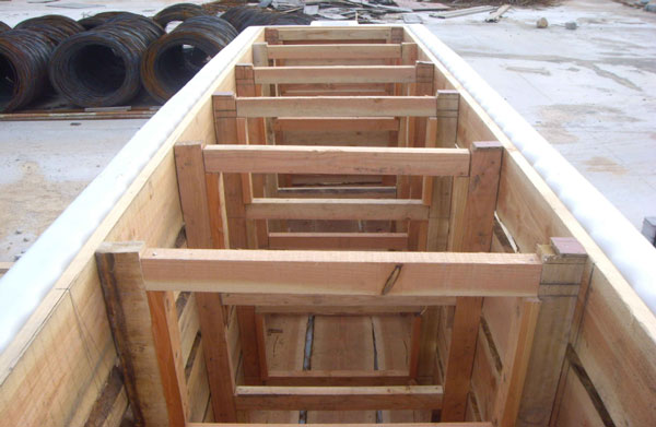 外模的安装 按照图纸要求的外形尺寸安装外模并严格进行加固以防止胀模。